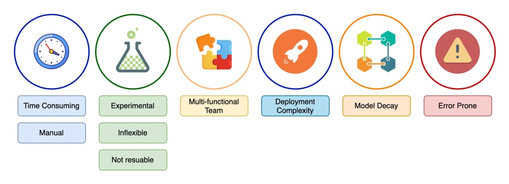 Even if the IT operations managed to deploy the model to production, models working well and giving expected prediction on a production data is a rarity. A trained model faces it own challenges (which we will discuss in the below section) when working on realtime datasets. Since the current ML system is mostly a manual processes, deploying a new updated model to production becomes an operational issue.