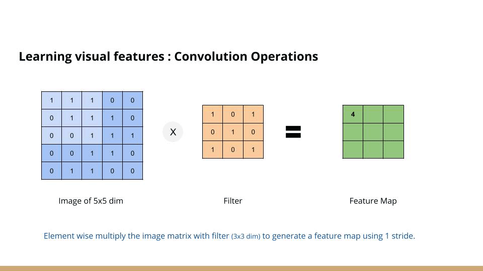 In order for computers to learn the features of an image without destroying the spatial information, a technique of filter kernels is applied. This kernel is applied by sliding across the image by one step.