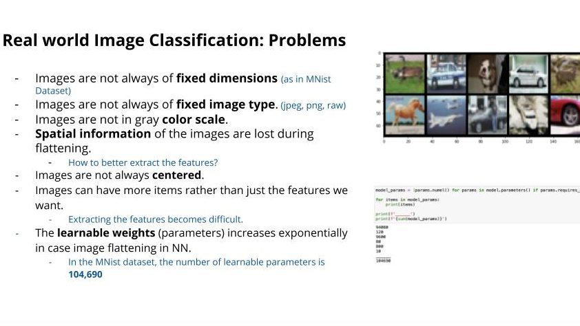 The problem with the MNist dataset is that it doesn’t represent the real world scenario. Images in the real world doesn’t have fixed dimension or in black/white color scale. Below are highlights of some of the key challenges of real-world images: