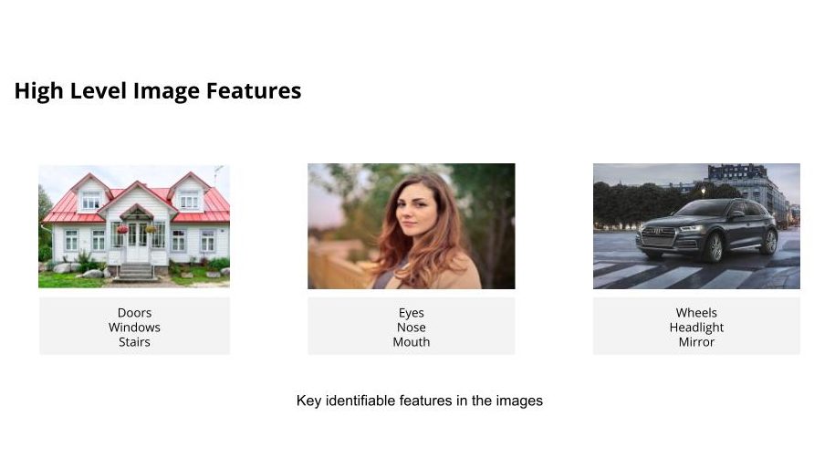 If we look closely, real world images have certain high level features. For example; If we see an images with features like eyes, nose, mouth, hair, etc. we can safely say that it is a picture of a person. The same would go for a house, car, road, and basically any objects.