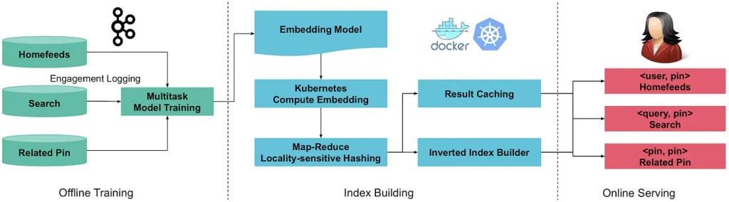 Pinterest uses vector search for image search and discovery across multiple areas of its platform, including recommended content on the home feed, related pins and search using a multitask learning model. The high level architecture diagram of Pinterest vector stack provides a view of the various stages of vector search process.